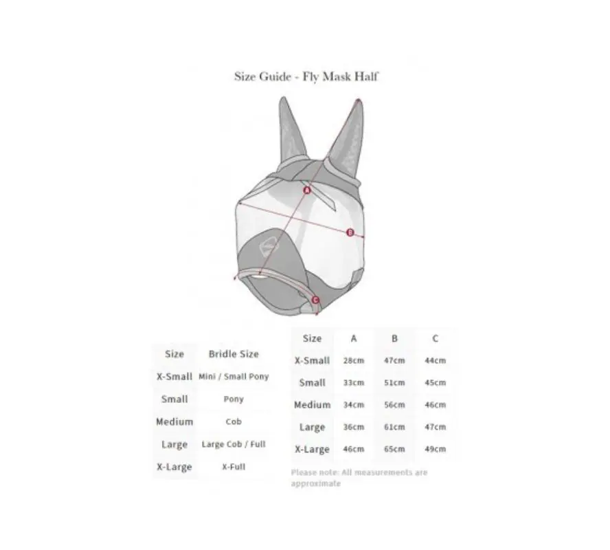 耳朵及面部有防蠅保護網製成,75% 抗紫外線。眼睛處的細網具有驅蠅效果,並且不遮擋馬匹視線,為馬提供良好的視野。配有尼龍搭扣可固定位置。頸部的鬆緊帶確保了良好的貼合性與舒適度。防蠅面罩邊緣採用柔軟羊毛製成,覆蓋鼻子,提供最佳保護。可機洗。 規格 FULL