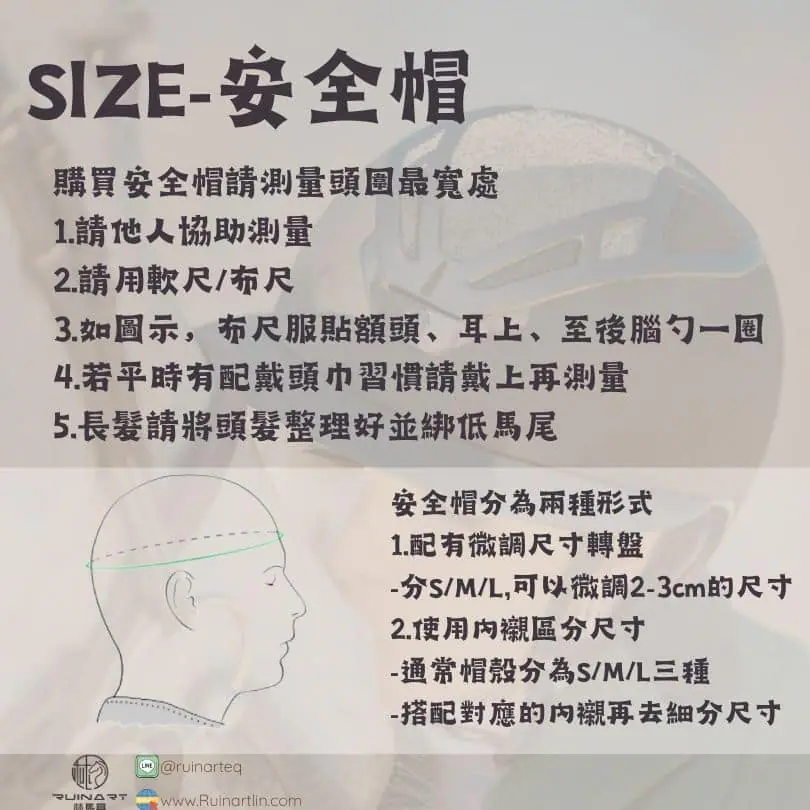 騎馬安全帽共有兩種形式: 1. 配有「微調尺寸轉盤」,有 S/M/L 號,可微調 2-3cm 頭圍。 2. 「外殼」有 S/M/L 號,搭配對應的「内襯」進一步細分尺寸。