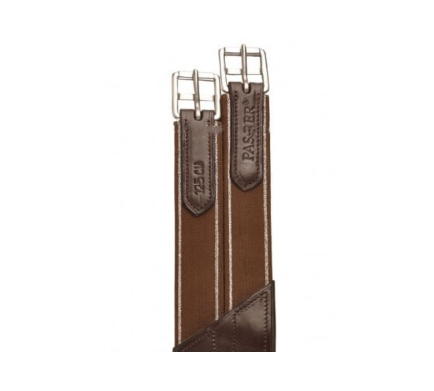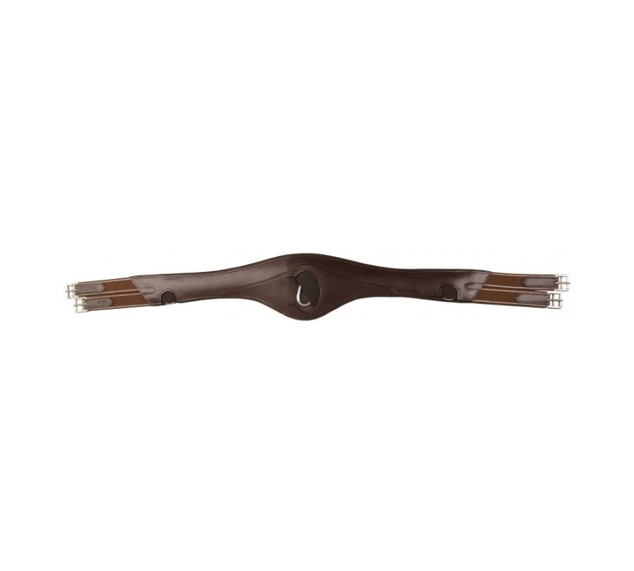 Passier 障礙肚帶,附有小面積蓋板,可在跳躍時保護腹部,腹瓣寬度為 16 公分。 內部由柔軟的皮革製成。 兩次的扣帶前短、後長,配有彈性。肚帶中間配有 D 型環,可以連接輔助韁繩。