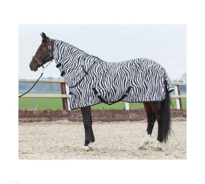 馬匹專用防蚊馬衣,斑馬的外觀造型可以干擾蚊蠅視覺,並減少蚊蠅在馬匹身上停留。