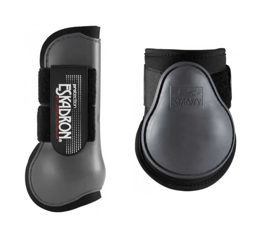 採用尼龍搭扣的前腿護膝。 由堅固的 TPE 塑膠製成。 具有柔軟的氯丁橡膠襯裡和雙魔鬼氈封口。 翻蓋上有 Eskadron 標誌。 可機洗。