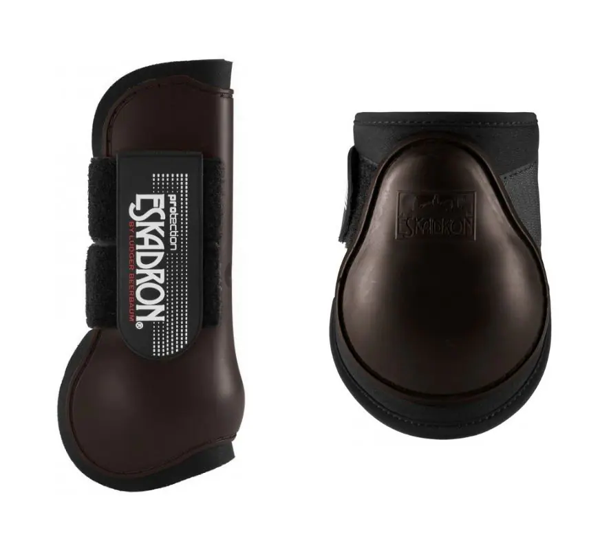 採用尼龍搭扣的前腿護膝。 由堅固的 TPE 塑膠製成。 具有柔軟的氯丁橡膠襯裡和雙魔鬼氈封口。 翻蓋上有 Eskadron 標誌。 可機洗。