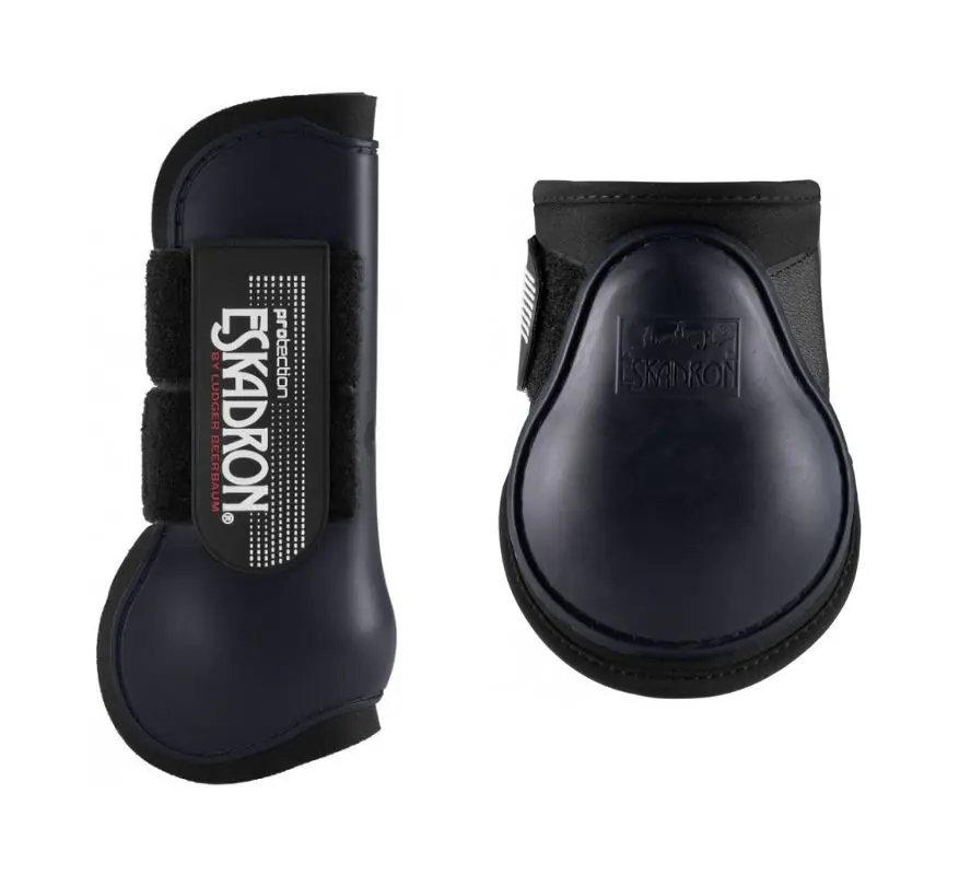 採用尼龍搭扣的前腿護膝。 由堅固的 TPE 塑膠製成。 具有柔軟的氯丁橡膠襯裡和雙魔鬼氈封口。 翻蓋上有 Eskadron 標誌。 可機洗。