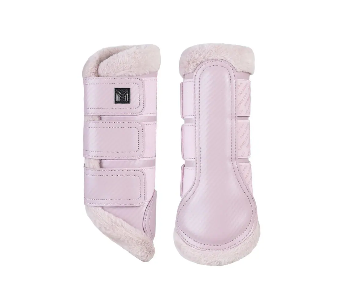 MaxiMilian 馬用羊毛護膝 – Drift 採用巧妙的技術設計與精緻細節處理,外觀宛如全毛刷毛靴,實則僅於靴筒邊緣配置柔軟人造毛皮,有效避免馬腿過熱。內襯使用高透氣穿孔氯丁橡膠,大幅提升空氣流通,兼顧舒適性與防護性能