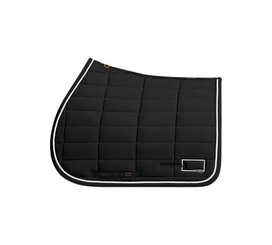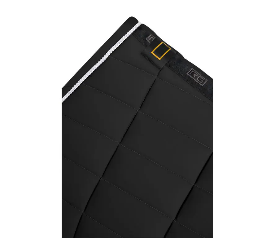 RG馬用障礙汗墊,方形拼接縫製,採用對比色的Logo標誌與縫線。