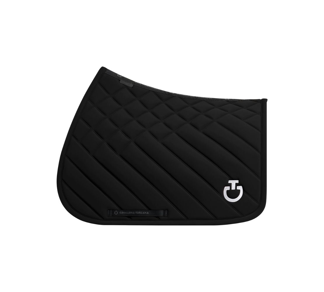 這款騎馬鞍墊結合了優雅與創新。性能面料的外層經過輕薄的填充和透氣的抗菌格紋紡織物襯裏。其堅固的結構確保了它在多次清洗後仍能持久耐用。內裡採用3D 蜂窩結構提供合適的抓地力,同時提供高透氣性、材料具有抗菌特性