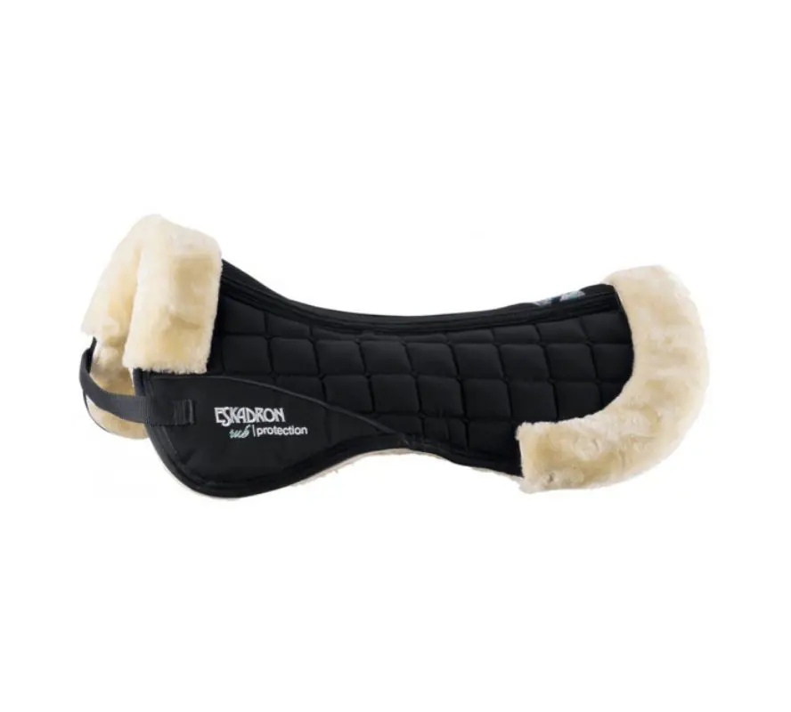 Eskadron 羊毛墊由舒適的棉質製作而成,配有優質仿毛皮的柔軟襯裡。 襯裡提供良好的壓力分佈,並與網狀縫結合,提供更好的空氣流通作用。 附有魔鬼氈固定繩,用於連接到馬鞍上,以固定位置。可提供額外的加固和防摩擦保護。可機洗。 規格 預購款黑色