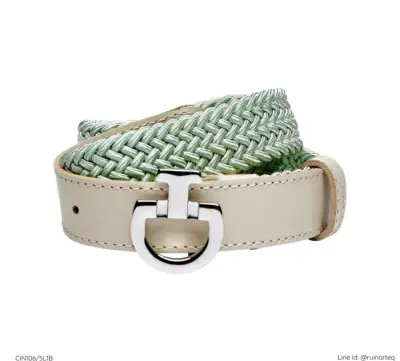 難得的淺色系搭配,CT品牌經典女款皮帶,彈性的編織皮帶提供最佳的穿著舒適度,皮帶尾端使用皮革精美裝飾,並帶有一個CT標誌的扣環,加以裝飾與固定。