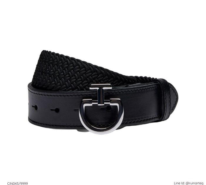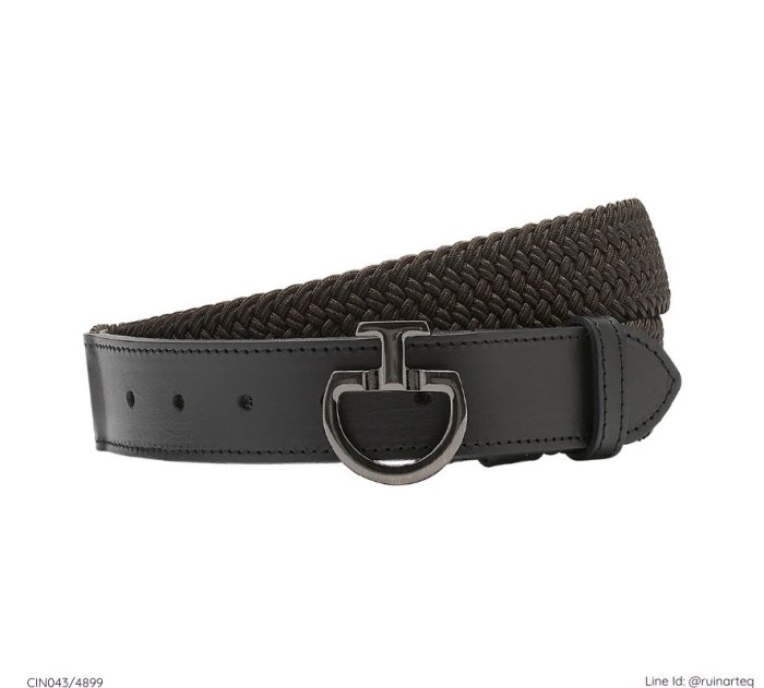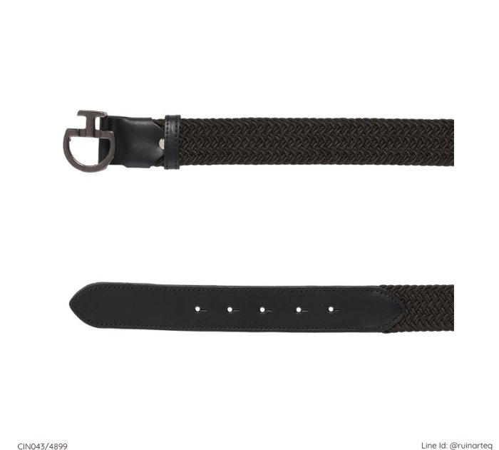CT品牌經典男款皮帶,彈性的編織皮帶提供最佳的穿著舒適度,皮帶尾端使用皮革精美裝飾,並帶有一個CT標誌的扣環,加以裝飾與固定。