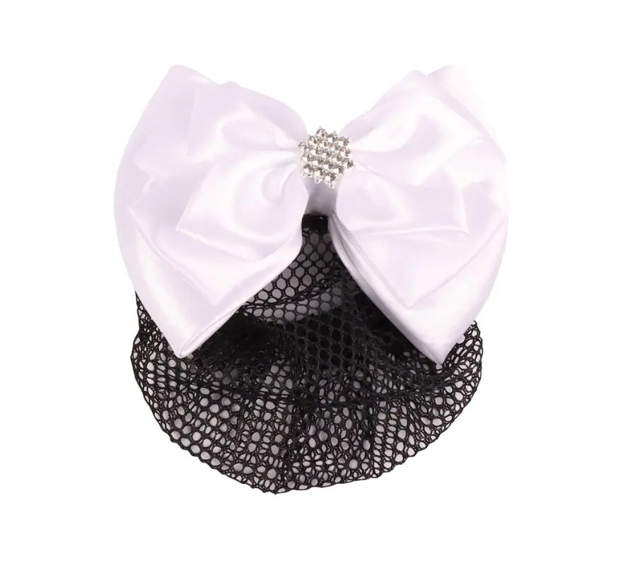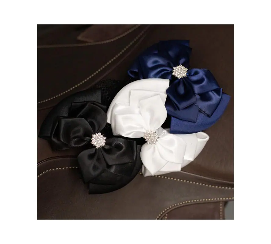 緞面的布料以蝴蝶結造型呈現,蝴蝶結中央以銀色光澤的水鑽排列星型形狀,配有網袋、固定夾。