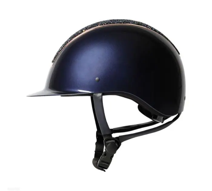 馬術專用安全帽 Regal Sparkle以亮面外殼為主體,以金屬線條裝飾,搭配細閃的水鑽裝飾。符合以下標準:CE VG1 01.040 2014-12。可拆卸、可清洗的內襯。還配有多個通風孔。 顏色 深藍玫瑰金, 黑銀 規格 S(52-54), M(55-57), L(58-60) 商品評價 目前沒有評價。 只有註冊並且購買過商品的顧客才能撰寫評價。