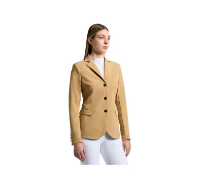 Cavalleria Toscana 女款比賽西裝外套結合優雅與技術創新,整件採用全鏤空細節設計,展現極致透氣性。高機能面料確保輕盈與舒適性,即使在高強度比賽日也能保持良好體感。經典修身版型完美勾勒身形,袖口處精緻刺繡品牌標誌增添細節美感。正面鈕扣設計搭配兩側實用口袋,讓整體造型兼具時尚與實用性。這款外套適合追求高機能與優雅風格的騎士,在比賽場合展現專業形象。