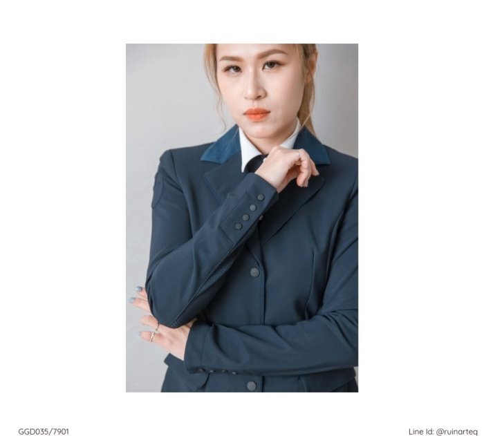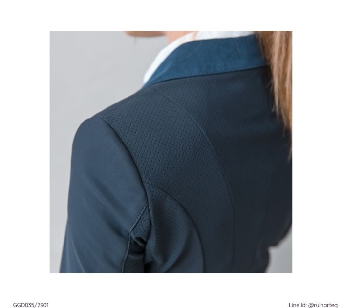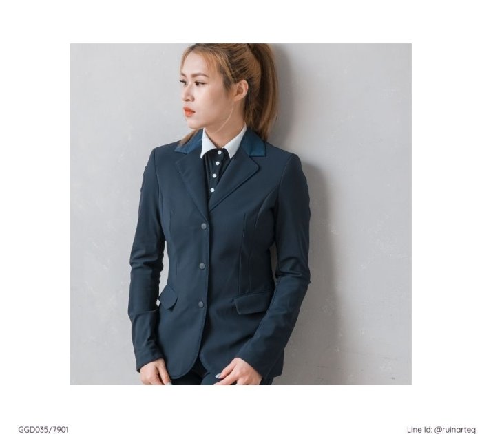 俐落簡約的外觀,穿上後呈現著優雅、經典的氣息。右側手臂上有CT Logo標誌。三顆鈕扣的下方配有拉鍊。這款外套還具有以下特點:抗菌、透氣、防紫外線、快速乾燥、防潑水。可適用於馬術比賽S2等級以下,與所有障礙比賽等級。