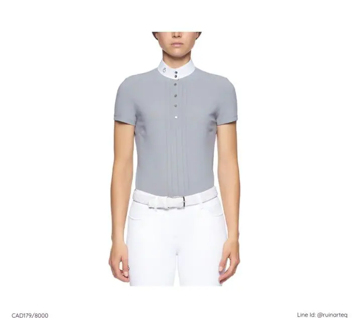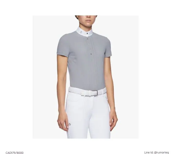 這款比賽用的短袖襯衫採用技術性4向彈性針織面料,結合了舒適、優雅和功能性。透氣、抗菌且快速乾燥:這種面料是比賽時的必備之選。襯衫由一排金屬鈕扣固定,並以褶皺細節增添了精緻感。