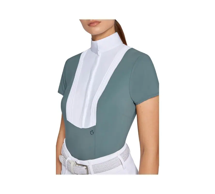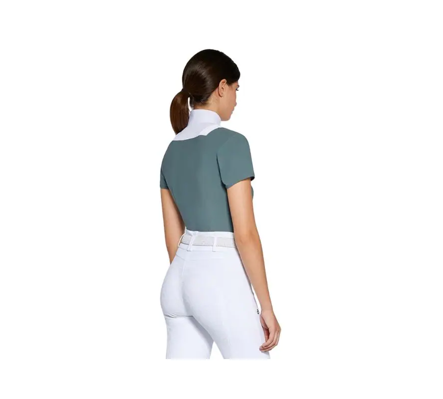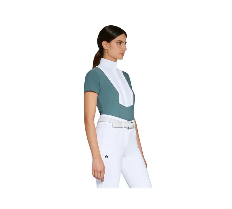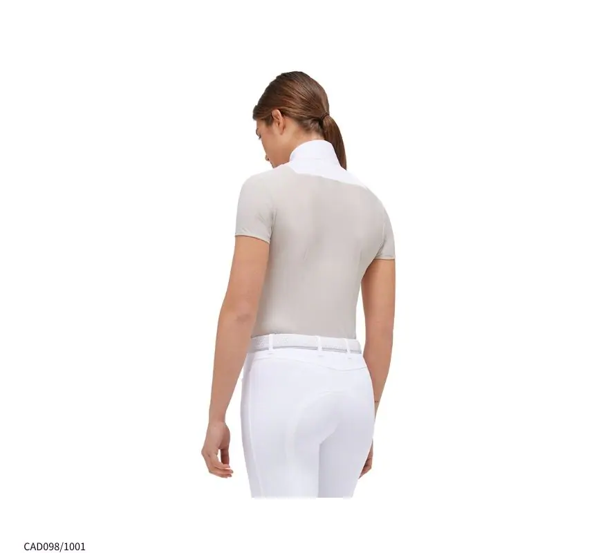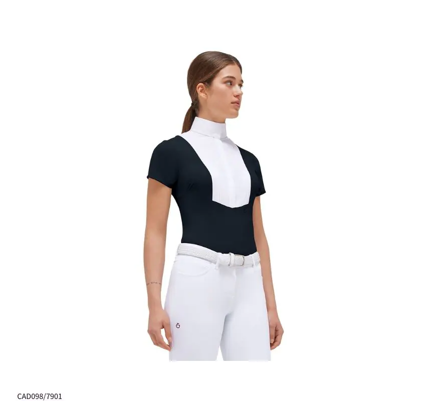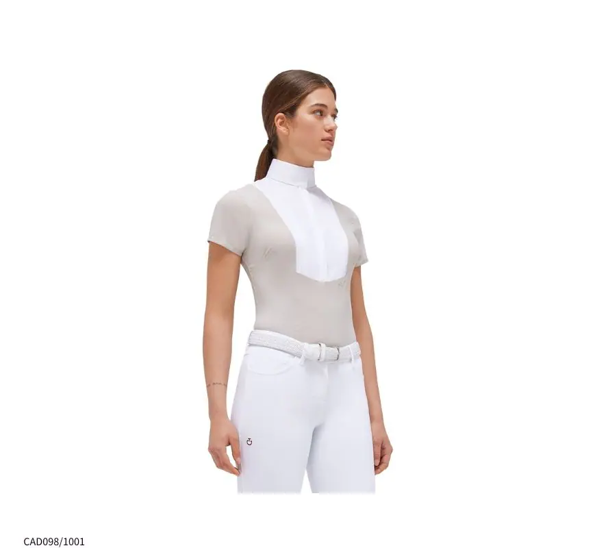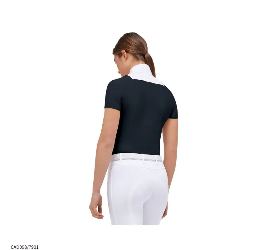 CT女款經典白領上衣,前胸帶有褶飾和隱藏鈕受。採用四向彈性技術與針織布料製成,完美貼合身型,追隨您的動作。前部有極小的Logo搭配同色縫線裝飾。