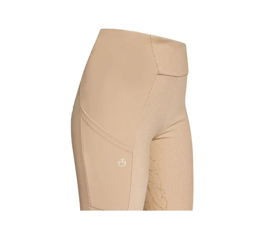 Cavalleria Toscana 女性全皮瑜珈馬褲 SS24 是一款適合台灣四季可以穿著的馬褲,瑜珈褲款,沒有任何金屬拉鍊或是釦子,貼身、舒適、靈活性高,非常輕薄就好像你的第二層皮膚一樣。臀部、大腿、膝蓋內側皆覆蓋止滑矽膠。此款馬褲的布料屬於馬褲中更加輕薄的款式,非常適合怕熱的騎手穿著。右側大腿上配有口袋,可放置手機,且不影響騎乘。矽膠採用大理石紋的花樣分佈,別出心裁。此款是屬於當季款式,售完不補。