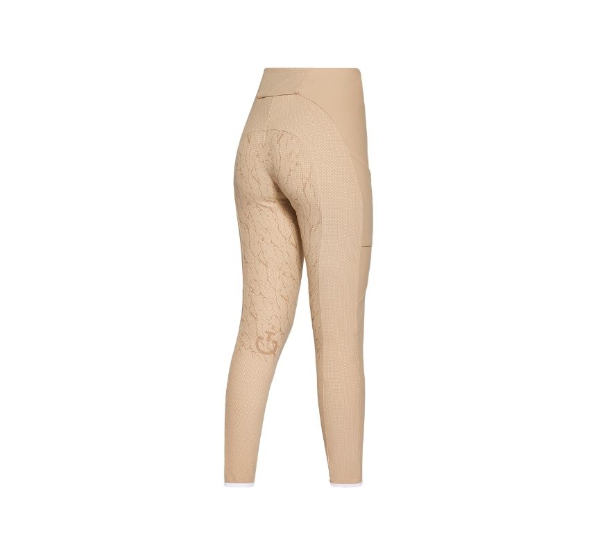 Cavalleria Toscana 女性全皮瑜珈馬褲 SS24 是一款適合台灣四季可以穿著的馬褲,瑜珈褲款,沒有任何金屬拉鍊或是釦子,貼身、舒適、靈活性高,非常輕薄就好像你的第二層皮膚一樣。臀部、大腿、膝蓋內側皆覆蓋止滑矽膠。此款馬褲的布料屬於馬褲中更加輕薄的款式,非常適合怕熱的騎手穿著。右側大腿上配有口袋,可放置手機,且不影響騎乘。矽膠採用大理石紋的花樣分佈,別出心裁。此款是屬於當季款式,售完不補。
