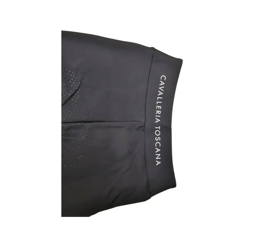 Cavalleria Toscana女性全皮瑜珈馬褲,是一款適合台灣四季可以穿著的馬褲,瑜珈褲款,沒有任何金屬拉鍊或是釦子,貼身、舒適、靈活性高,非常輕薄就好像你的第二層皮膚一樣。臀部、大腿、膝蓋內側皆覆蓋止滑矽膠。此款馬褲的布料屬於馬褲中更加輕薄的款式,非常適合怕熱的騎手穿著。右側大腿上配有口袋,可放置手機,且不影響騎乘。本季主打的波普風元素,也融入在此馬褲的設計中,此款屬於當季款式,售完無法追加。