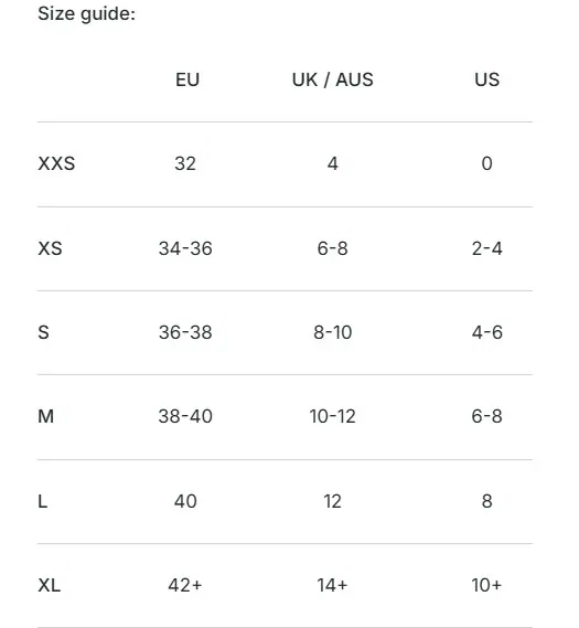 | 規格 | XS(EU34-36), S(EU36-38), M(EU38-40) |