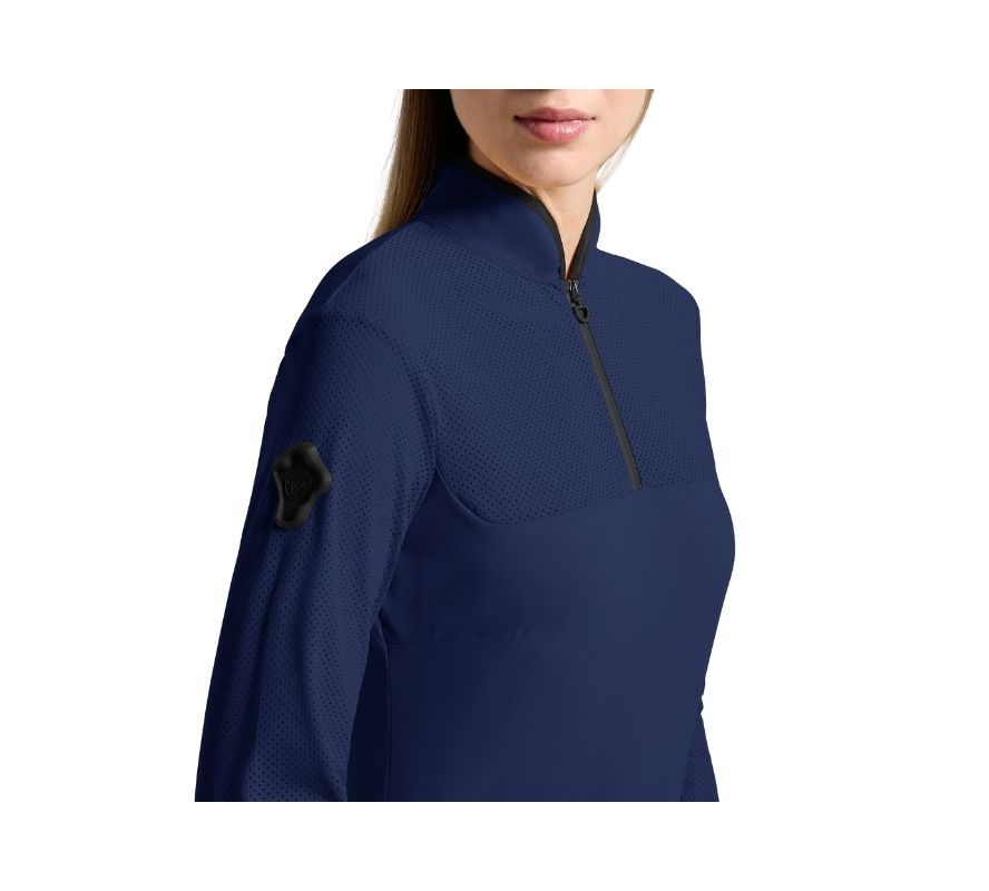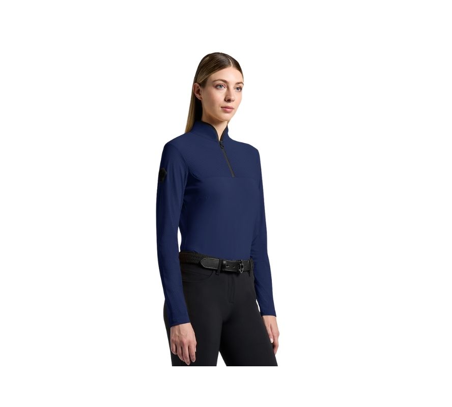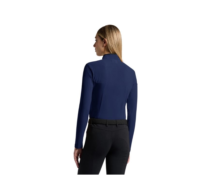 Cavalleria Toscana 女款長袖技術訓練 Polo 上衣,專為長時間騎乘設計,採用高機能透氣布料,提供卓越的溫度調節與舒適感。符合人體工學的剪裁確保靈活度,半開式拉鍊設計提升實用性,方便穿脫。胸口矽膠印花 Cavalleria Toscana 標誌,低調而優雅,提升整體造型感。這款 Polo 衫適合強度較高的訓練課程與戶外騎乘,提供良好防曬效果,是追求時尚與機能性的騎手理想選擇。