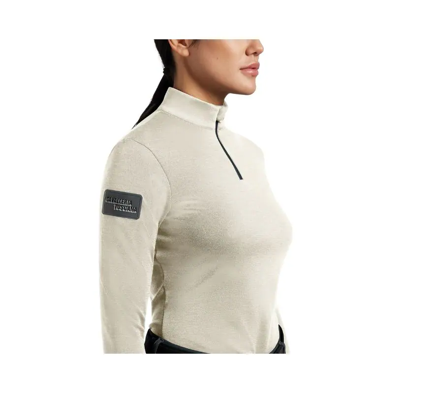 Cavalleria Toscana 女款保暖長袖上衣,採用優質面料製成,外部採用羊毛,內部採用聚酰胺,確保保暖性和透氣性。前拉鍊方便在激烈的訓練過程中穿著和調節溫度。右袖上的標誌貼片賦予獨特而精緻的外觀。 Cavalleria Toscana 女款長袖羊毛保暖上衣,兼具功能性和時尚風格,是訓練課程的理想之選,是每位騎手衣櫥中的必備單品。這款服裝易於維護,非常適合在日常訓練中尋求最佳品質和設計的人。