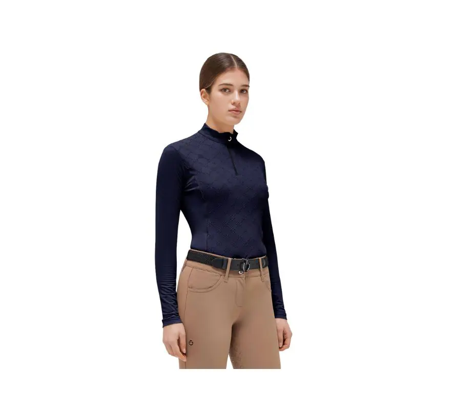 Cavalleria Toscana 女性休閒長袖上衣。此款POLO衫設計旨在提供騎手保暖與舒適度,非常適合冬季的季節穿著。拉鍊款,方便穿脫也能體現不同的穿衣風格。