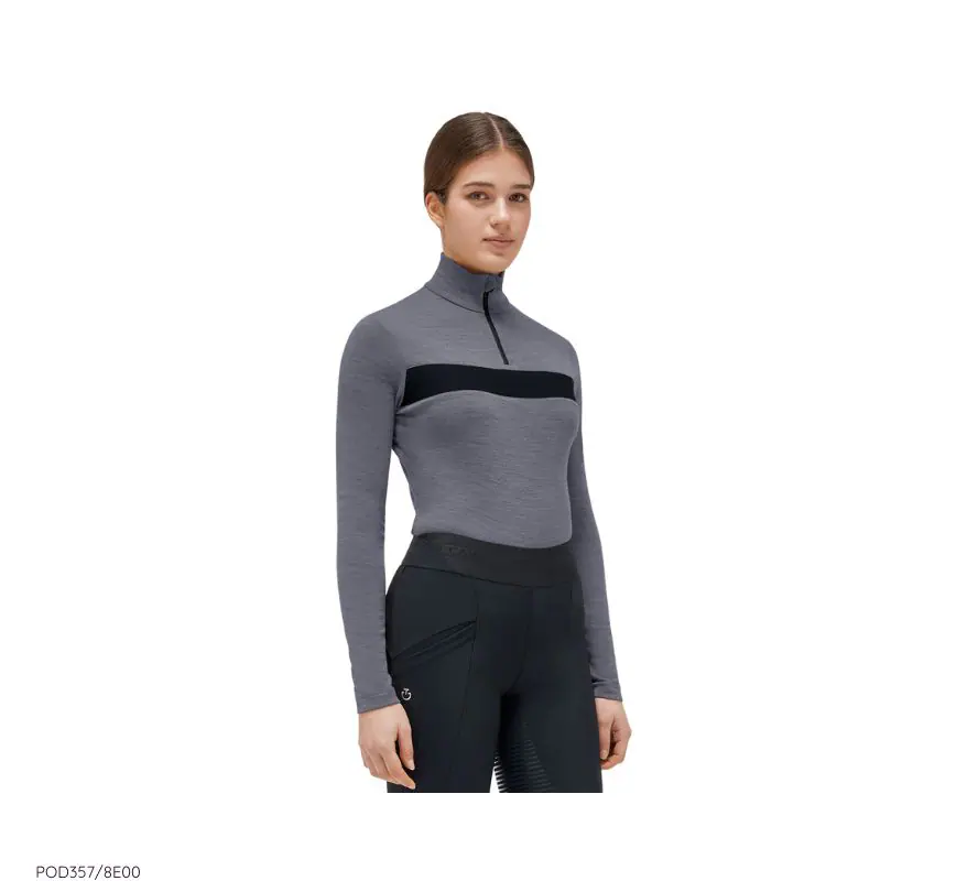 這款女士技術羊毛拉鍊尼龍網紋長袖訓練 POLO 衫非常適合運動,搭配 CT 馬褲整體效果更佳。這款網紋面料提供卓越的舒適度和耐用性。前襟飾有黑色 Cavalleria Toscana 字樣的緞帶,增添了一份優雅。黑色 PU 拉鍊既實用又時尚。這款 POLO 衫有兩種顏色可選,是每位熱愛馬術的女性不可或缺的單品。