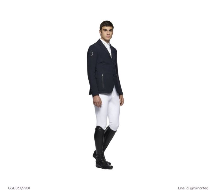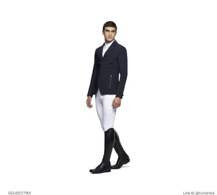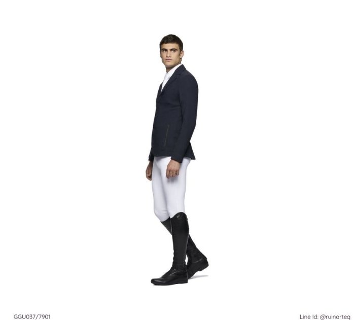 這款男士騎術外套採用輕盈的、高度透氣的技術性面料製成,非常適合夏天的穿著。結合了時尚、性能和舒適,特別適合騎馬活動。右側手臂上有CT Logo標誌。三顆鈕扣的下方配有拉鍊。可適用於馬術比賽S2等級以下,與所有障礙比賽等級。