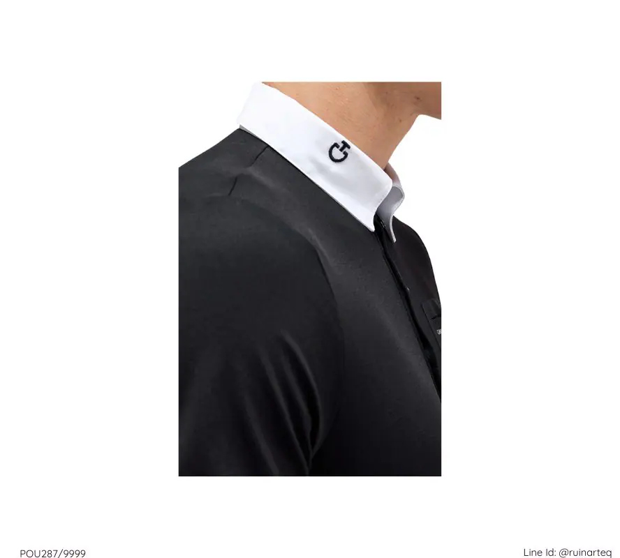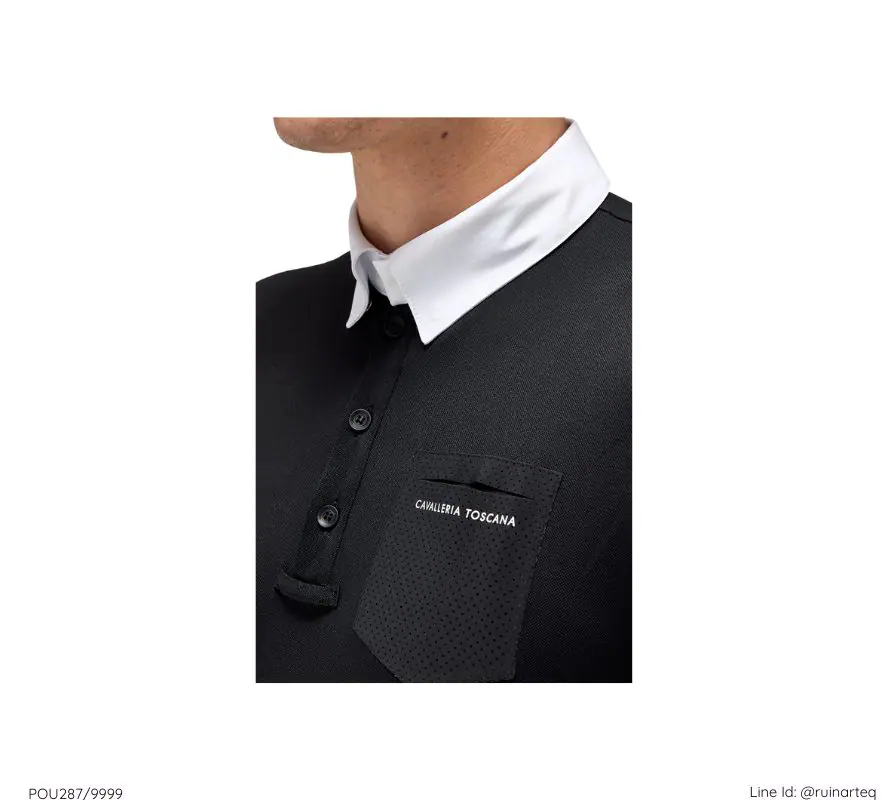 CT男款白領上衣,排釦款。側腰兩處以網眼布料拼接,增加散熱與透氣度,非常合適怕熱、易出汗的騎手穿著。