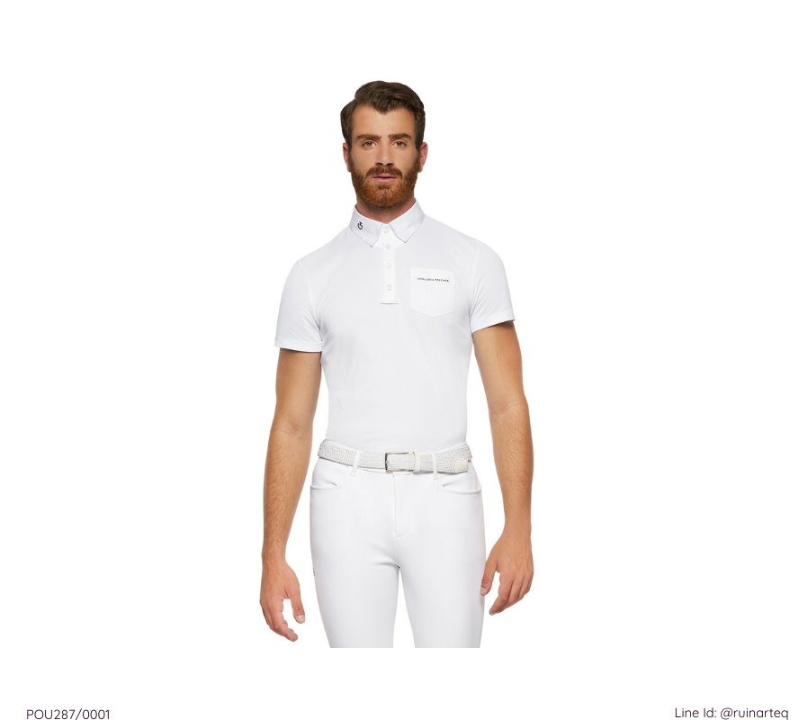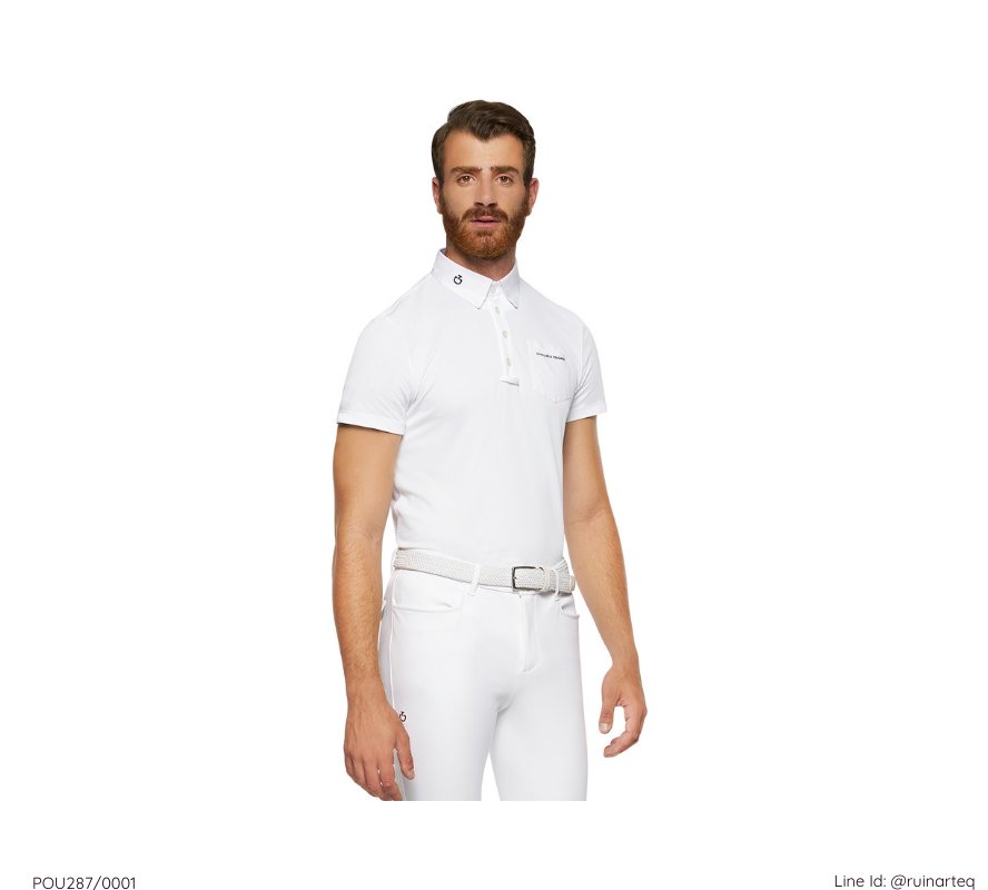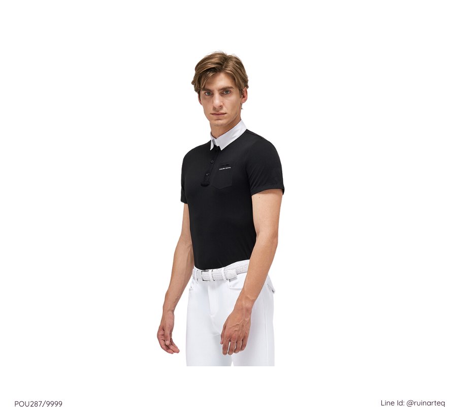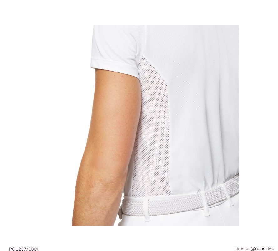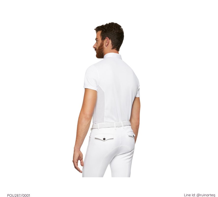 CT男款白領上衣,排釦款。側腰兩處以網眼布料拼接,增加散熱與透氣度,非常合適怕熱、易出汗的騎手穿著。