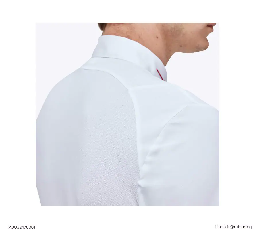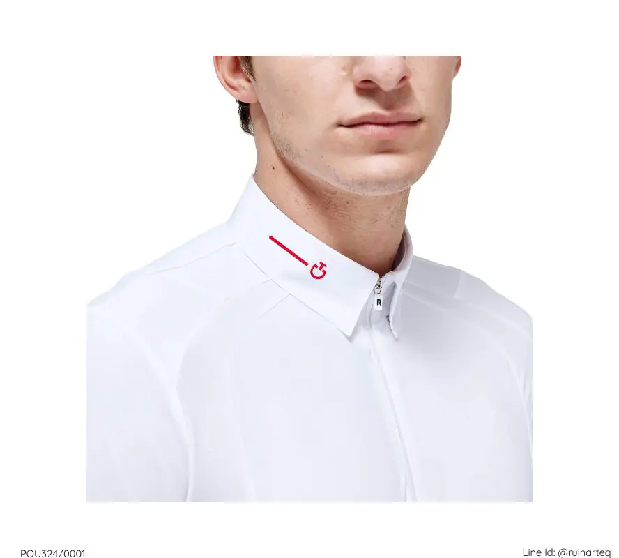 CT男款白領上衣,拉鍊款。後背以REVO針織面料製成,布料細緻、柔軟,且非常排汗、速乾,適合多汗、怕悶熱的騎手穿著。領口以紅色Logo與線條呈現,相當畫龍點睛。