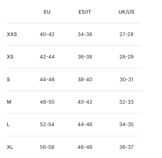 | 規格 | S(EU44-46), M(EU48-50), L(EU52-54), XL(EU56-58) |
