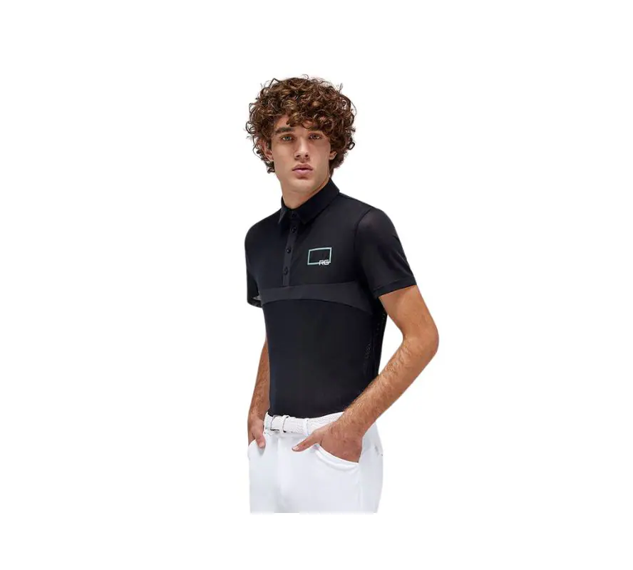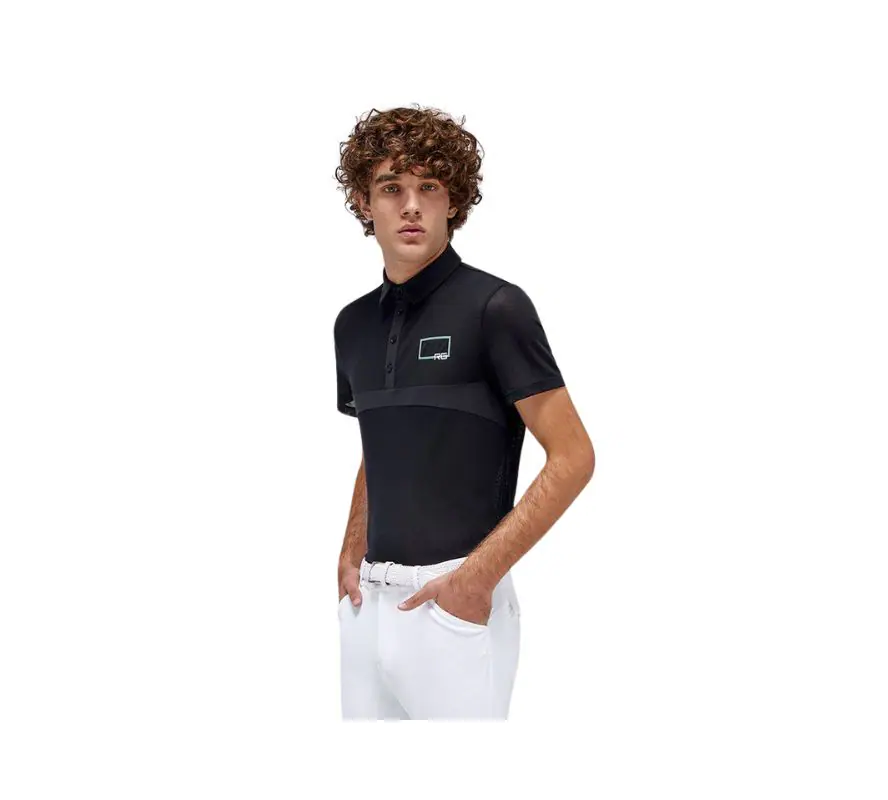 RG男款透氣排汗襯衫-POM006。採用全網眼效果的彈性技術Jersey piqué面料製成,提供完美的透氣性,並保有柔軟度和彈性、適合四季穿著,輕便且抗異味。典型的翻領設計搭配不對稱的刺繡,結合設計感與舒適性。