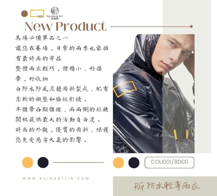 馬場必備單品之一,讓您在賽場、日常的雨季也能擁有最時尚的穿搭,整體雨衣輕巧、體積小,好攜帶、好收納,男女同款。