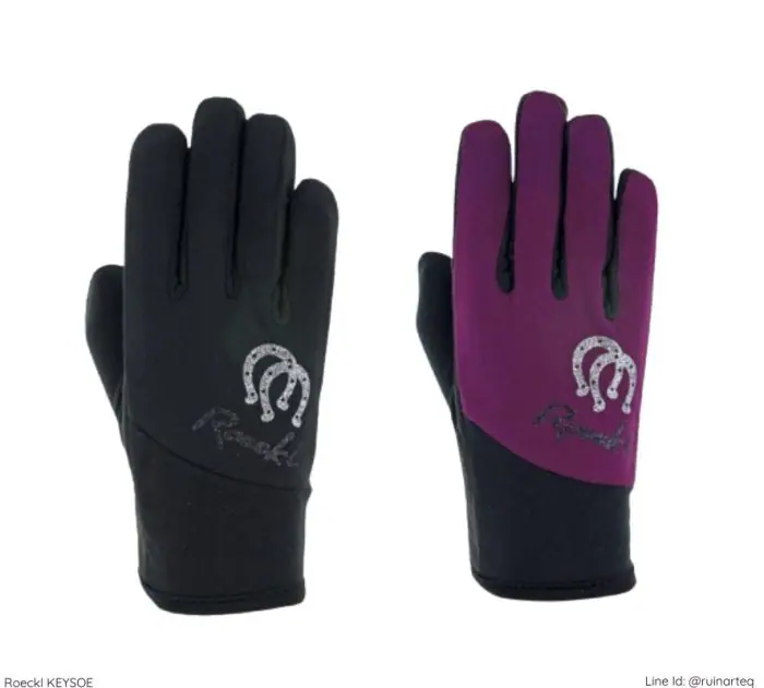 手套背面飾有閃亮的銀色馬蹄和印刷的閃粉ROECKL徽標。