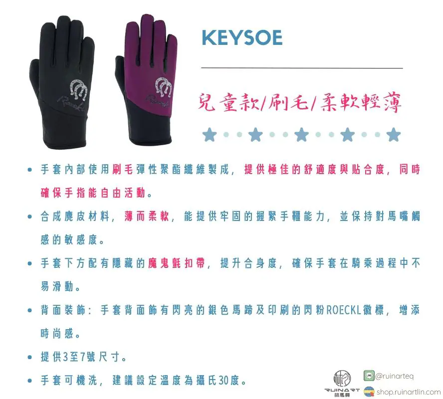 KEYSOE兒童騎馬手套,專為年輕的馬術愛好者而設計。