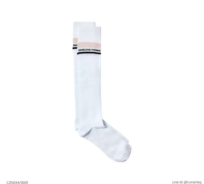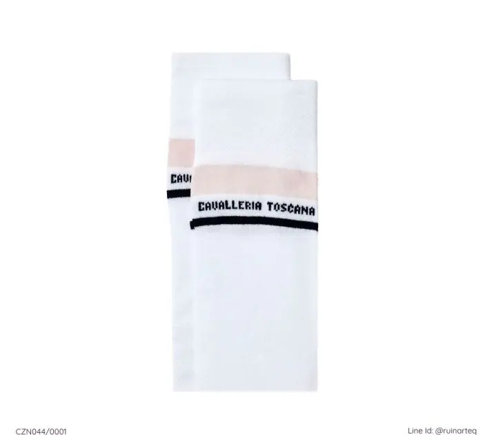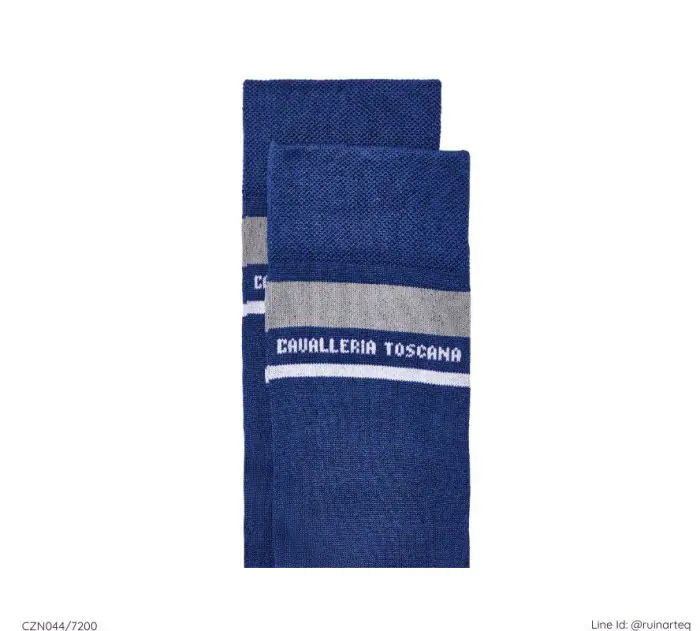 簡約的Cavalleria Toscan字樣刺繡於襪管頂端,寶藍灰與白粉兩種色系可選。