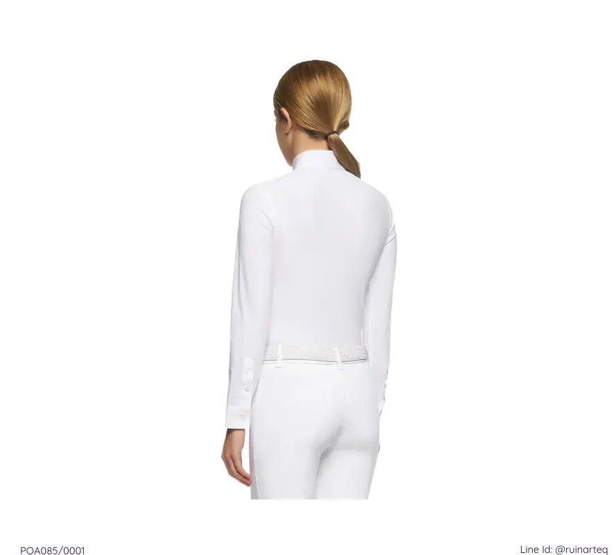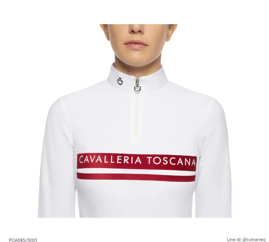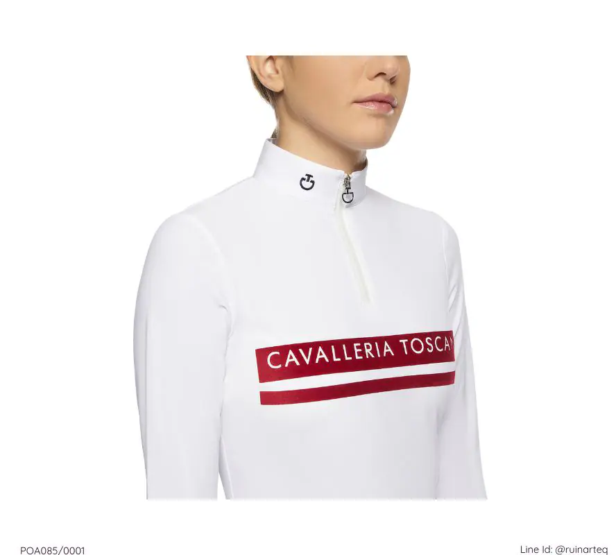CT女童款白領長袖上衣,拉鍊款。胸前以紅色線條呈現,非常帥氣。此款上衣雖為女童款,但男童也可以穿著。