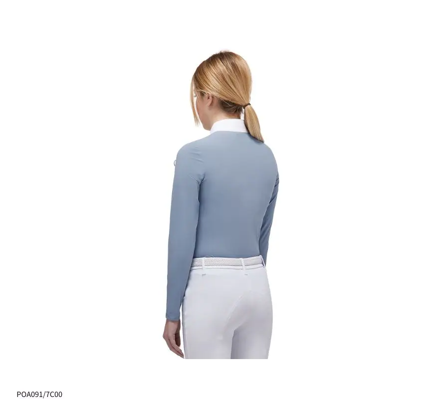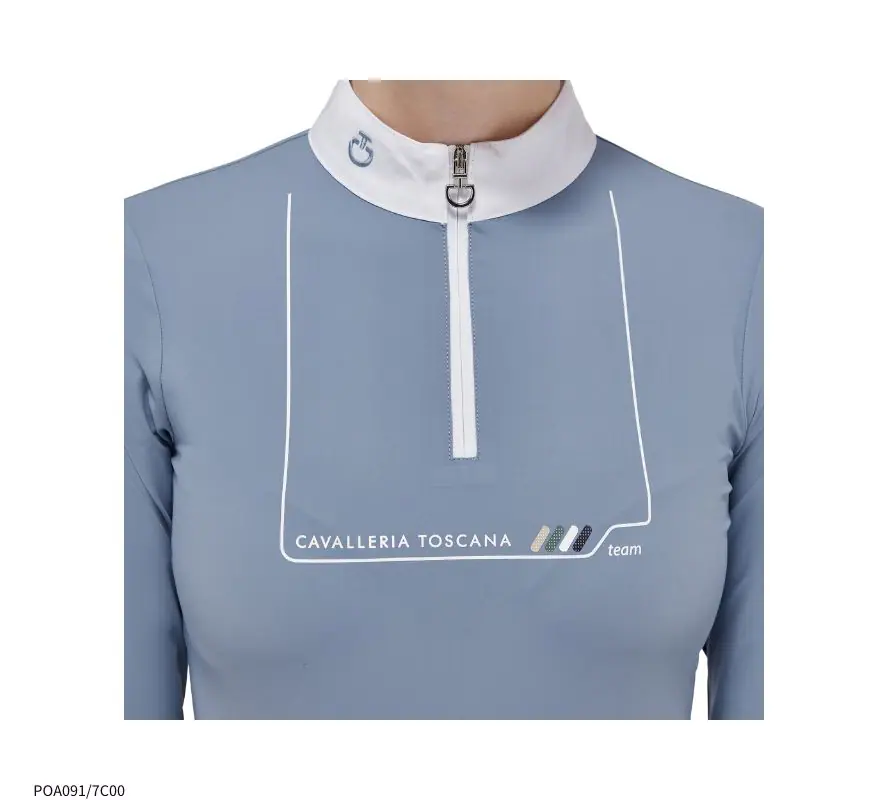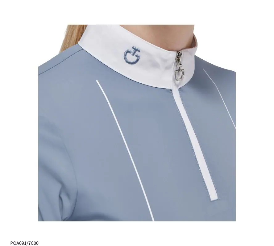 尺寸建議表 CT女童白領長袖上衣,充滿青春活力氣息的水藍色,最適合少女騎手穿著了。萊卡的面料,透氣、舒適,是肌膚容易敏感的孩子們的首選。半拉鍊領口設計,方便穿脫。