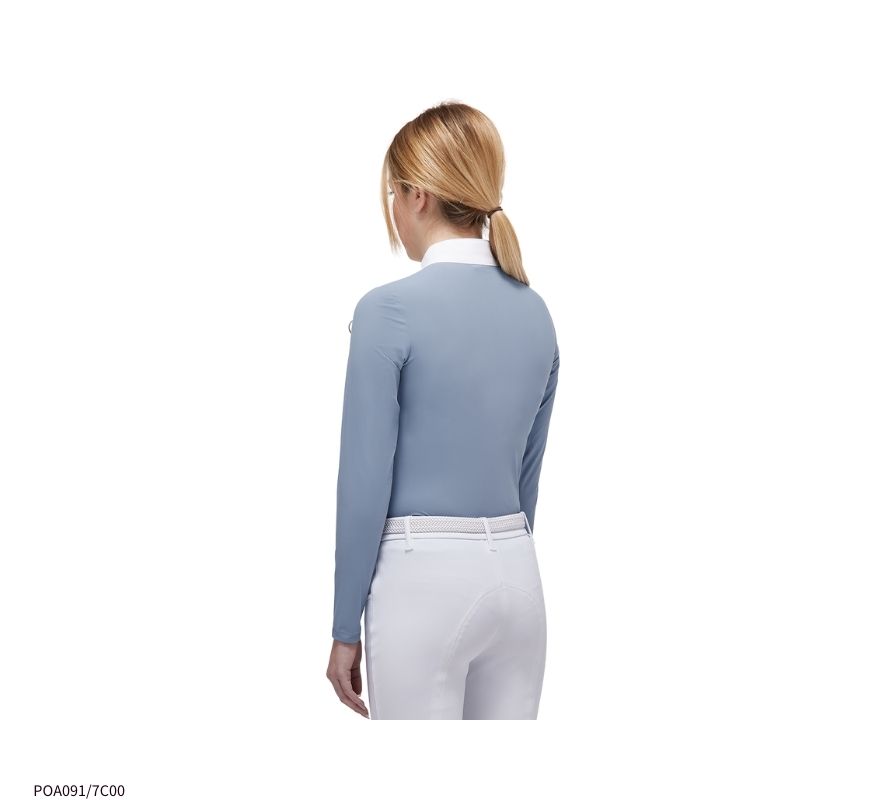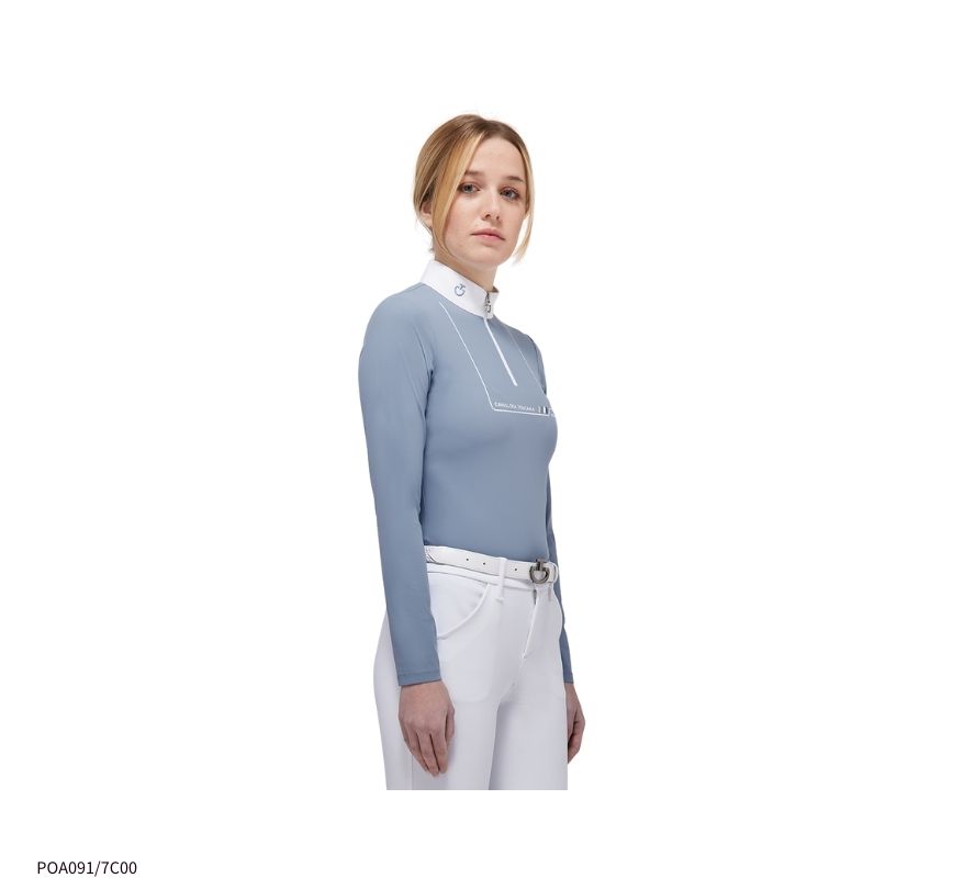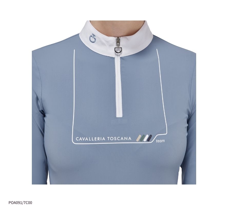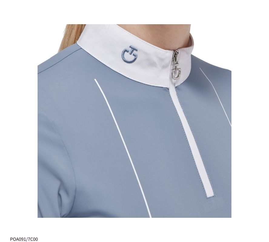 CT女童白領長袖上衣,充滿青春活力氣息的水藍色,最適合少女騎手穿著了。萊卡的面料,透氣、舒適,是肌膚容易敏感的孩子們的首選。半拉鍊領口設計,方便穿脫。