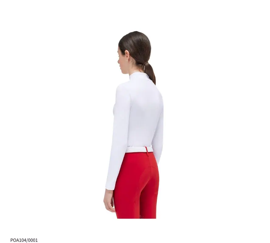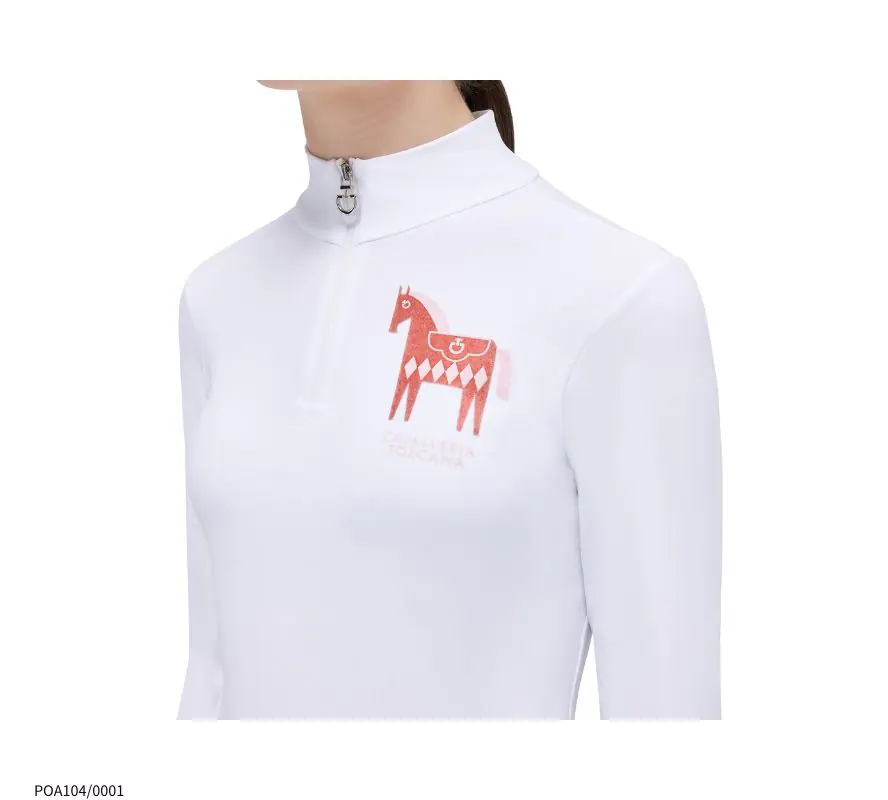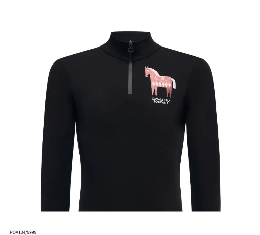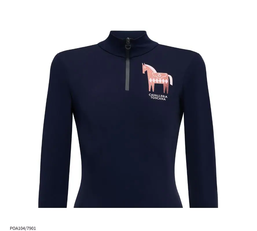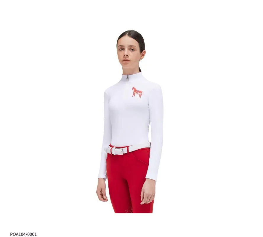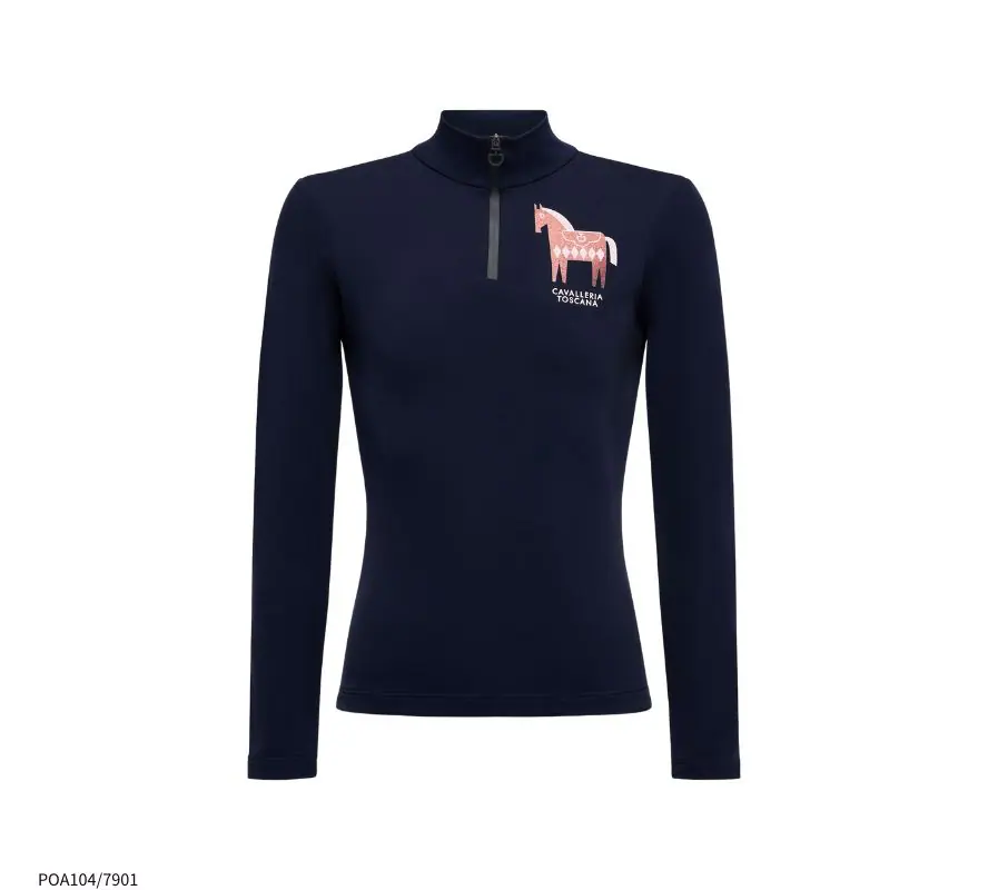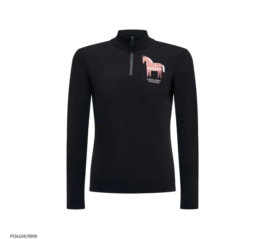 CT女童保暖長袖上衣,此款羊毛針織訓練衫,是低溫的訓練必備上衣,兼具了保暖度與透氣性,讓汗水能夠快速代謝,保持衣服乾爽舒適,降低了感冒的風險。前胸的小馬印花採用細閃的面料呈現,是女童們的心中首選。半拉鍊領口,配有橡膠封條,避免了寒風入侵身體。