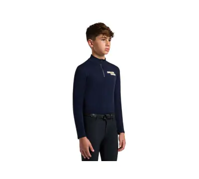 Cavalleria Toscana男童保暖長袖上衣,此款羊毛針織訓練衫,是低溫的訓練必備上衣,兼具了保暖度與透氣性,讓汗水能夠快速代謝,保持衣服乾爽舒適,降低了感冒的風險。前胸撞色的立體感Logo為矽膠材質。半拉鍊領口,配有橡膠封條,避免了寒風入侵身體,並可以調節溫度。