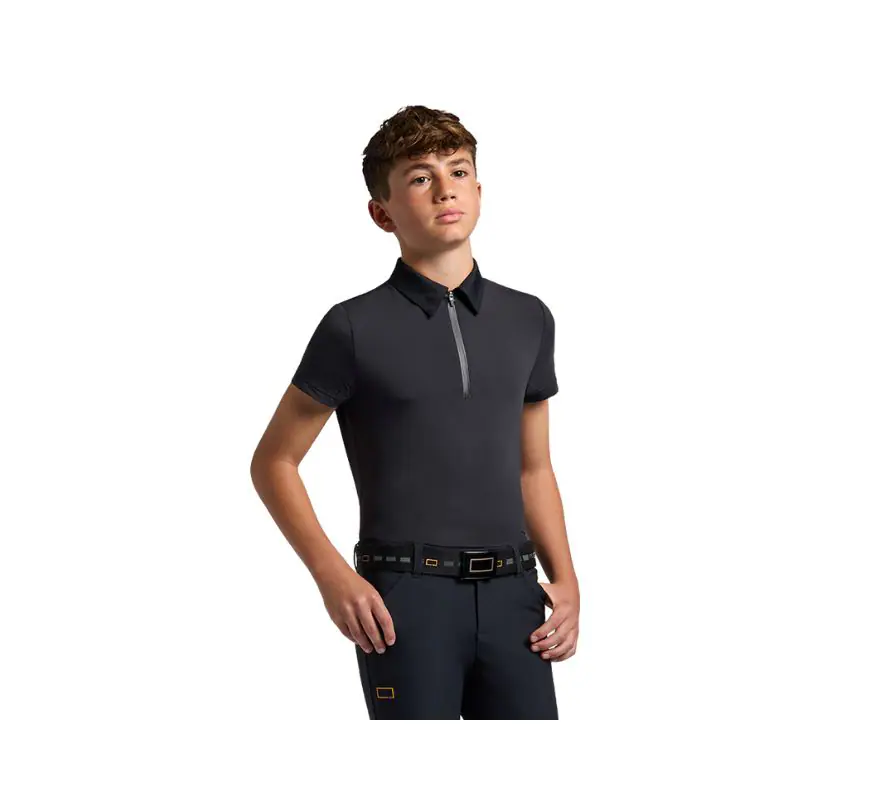 Rider’s Gene 男童短袖Polo衫安全,是年輕騎手的完美選擇。它由微孔針織面料製成,具有出色的透氣性和活動自由度。正面拉鍊具備方便穿脫、調節體溫的實用性,而經典的衣領和技術細節則增添了一絲的優雅氣息。這款 Polo 衫非常適合日常訓練,展現了 Rider’s Gene 專為年輕馬術運動員量身定制的標誌性風格和品質。