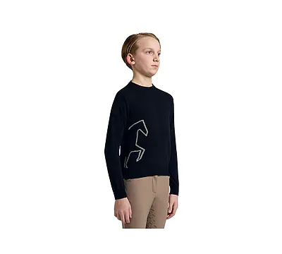 Cavalleria Toscana 男童保暖上衣-MAO004 以柔軟羊絨混紡打造,飾有經典駿馬提花圖案,兼具溫暖與精緻感。