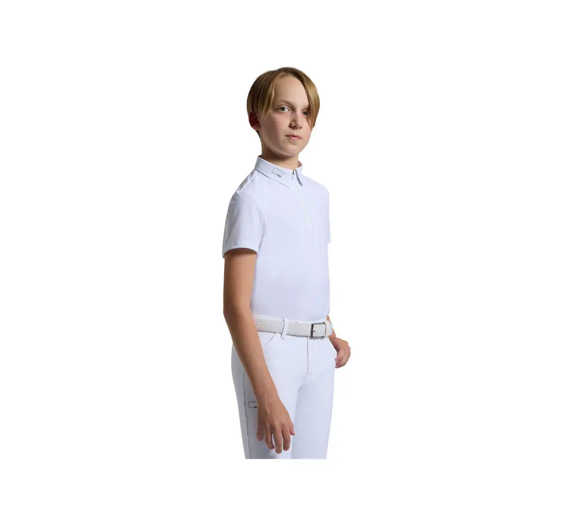 這款 Rider’s Gene 男童競賽上衣結合性能與造型。輕盈透氣機能面料提供舒適與乾爽體驗。立領與前半開拉鍊設計帶來實用貼合效果,人體工學剪裁確保活動自由度,在賽場上展現專業且俐落的騎乘形象 規格 8, 10, 12, 14
