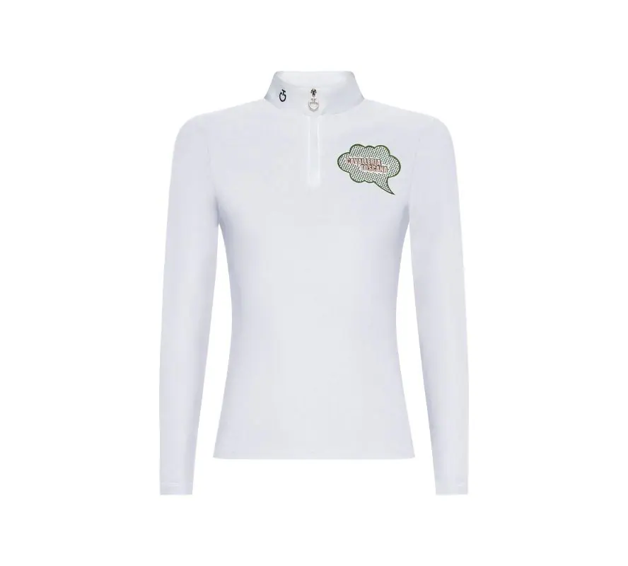 尺寸建議表 Cavalleria Toscana 女童白領長袖拉鍊、印花科技上衣。透氣、抗紫外線、快速乾燥,是這件上衣的特點。這款科技襯衫非常適合比賽,也可以作為日常休閒的穿搭。 顏色 0001白色 規格 8, 10, 12, 14