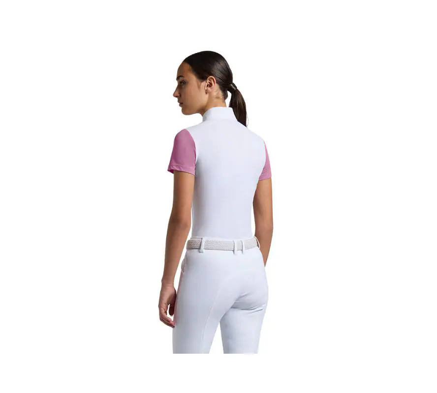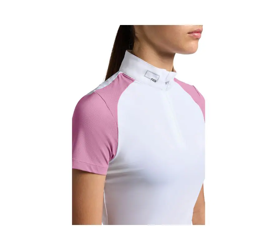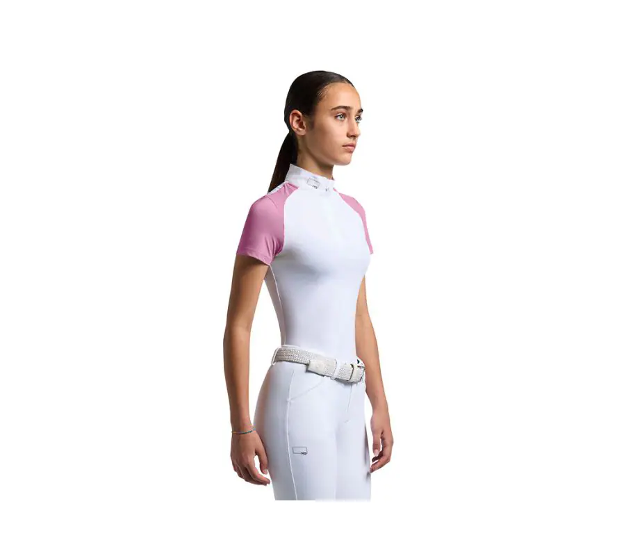 The Rider’s Gene 女孩短袖比賽襯衫專為尋求風格和性能的年輕騎手而設計,它由微孔針織面料製成,確保卓越的透氣性和無與倫比的活動自由度,其特點包括方便閉合的隱藏式前拉鍊和優雅的經典衣領,提供卓越的舒適度,使這款襯衫成為比賽的理想選擇。