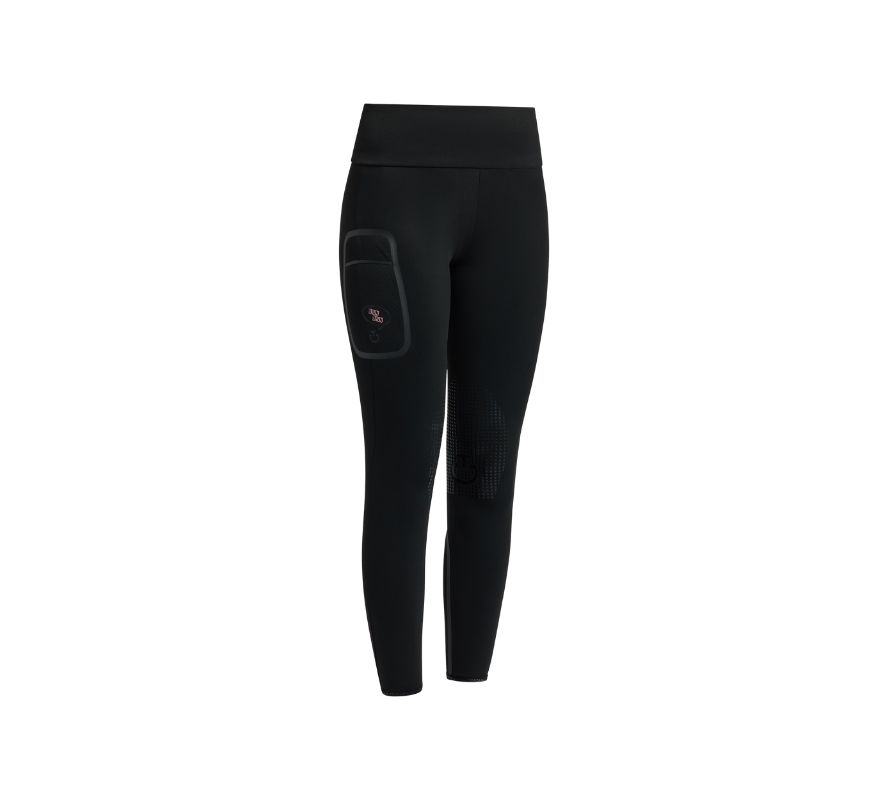 右側大腿處配有對比色口袋,可放置手機,口袋上有本季主打波普風元素塗鴉。馬褲採用科技平針織面料,此款馬褲結合時尚外觀與功能性唯一體,舒適的版型與彈性布料,可以確保小騎士在運動過程中的活動自由。
