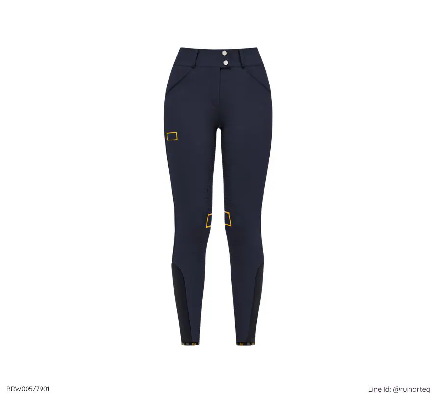 技術性的雙向彈性材料確保高度的運動自由度。腰帶內側配有矽膠止滑條,可固定住衣服並維持褲頭位置。帶有雙鈕扣和寬腰帶環,改善了騎褲的合身度,從而增加了穿著舒適度。合身、透氣的褲腳束口防止褲腳在馬靴內產生皺摺。對比色的馬褲突顯了騎褲的時尚設計。